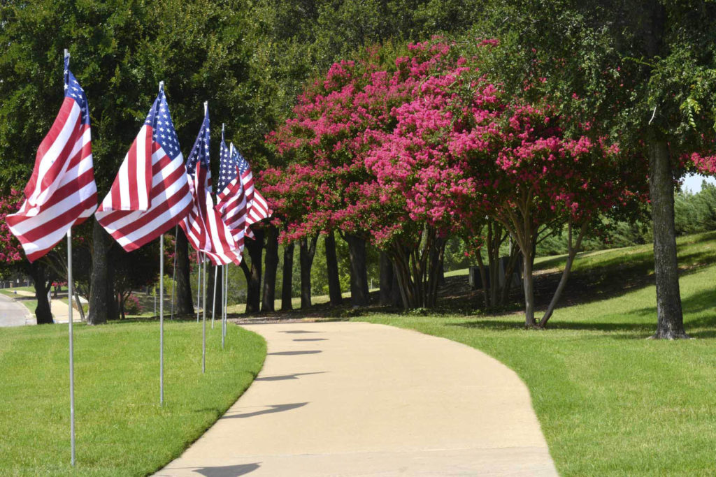 Crape myrtles around McKinney Stonebridge United Methodist Church on Stonebridge Drive
