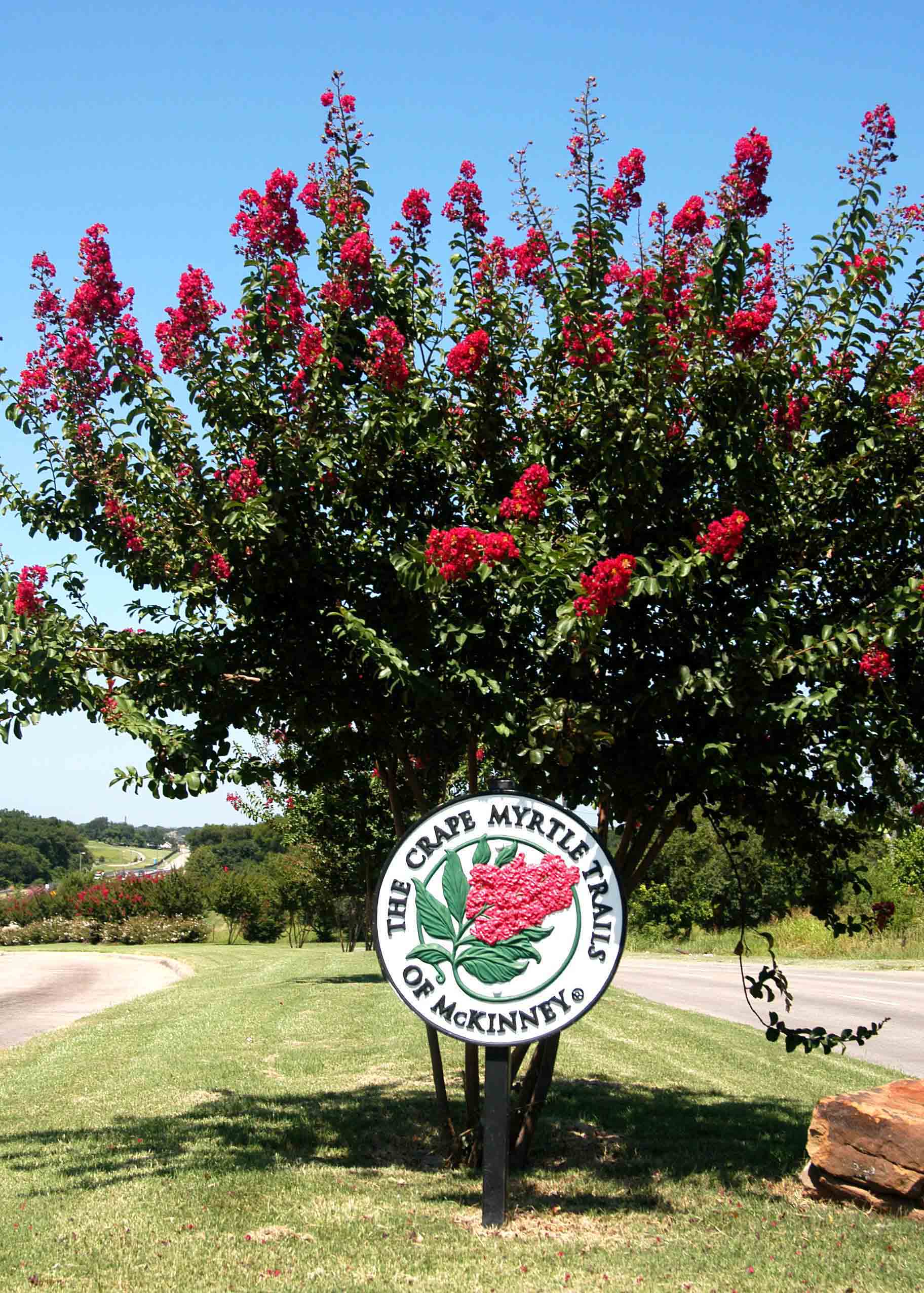 East end, The Crape Myrtle Trails of McKinney Country Red crape myrtles at Highway 5
